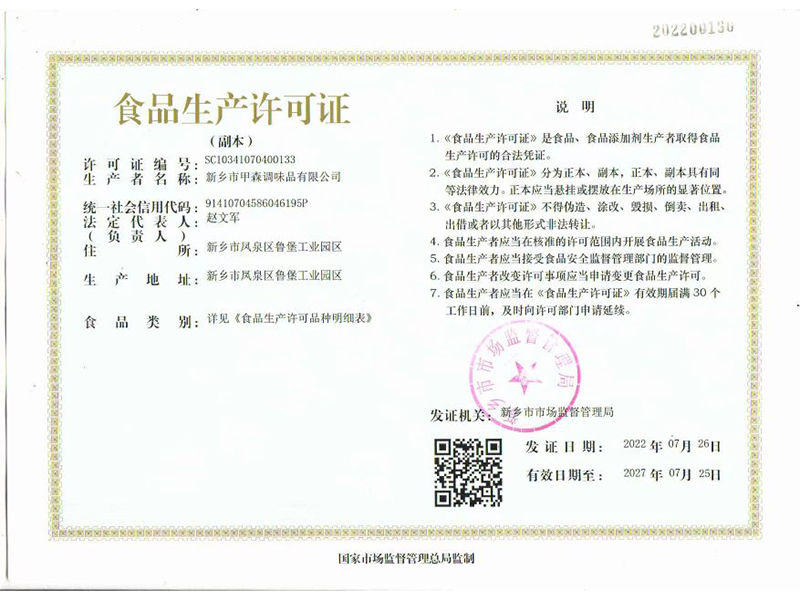 新鄉(xiāng)市甲森調(diào)味品有限公司
